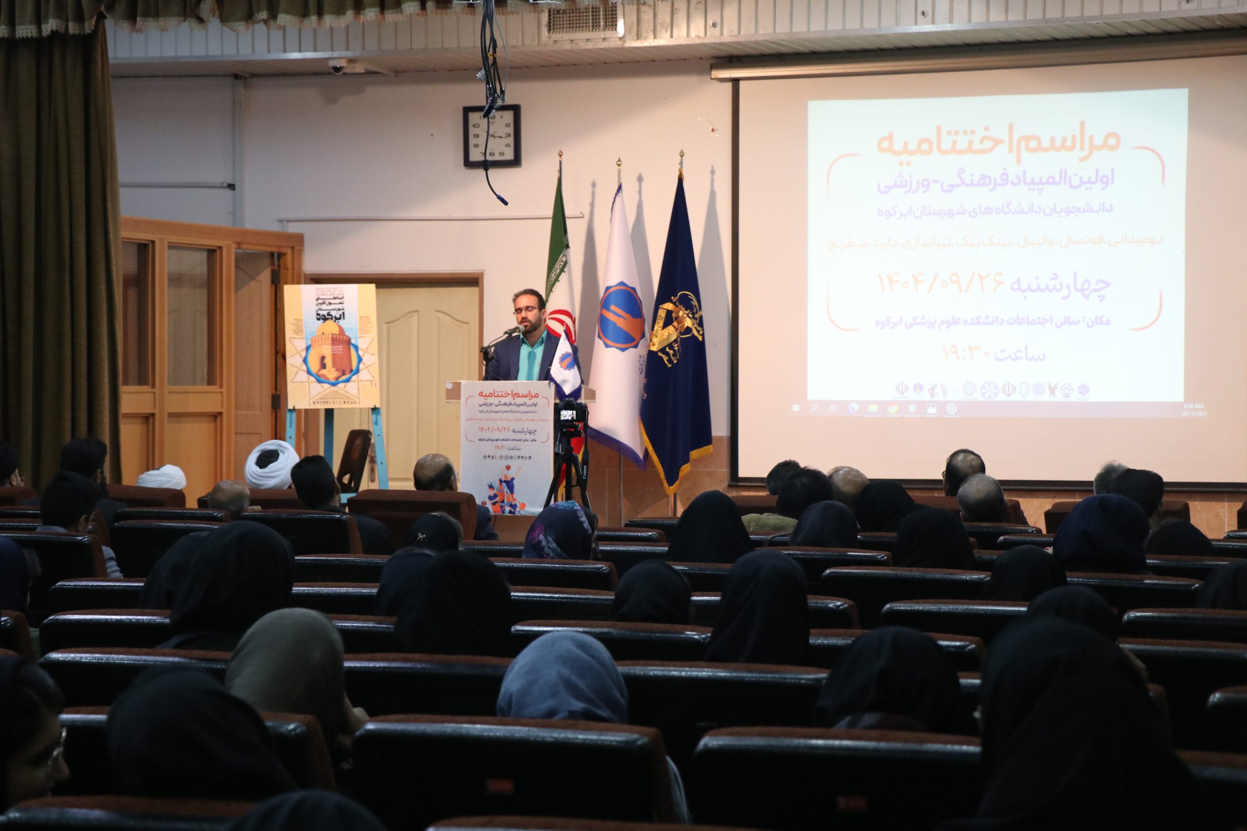 به گزارش روابطعمومی هیئت اندیشهورز تحول و پیشرفت شهرستان ابرکوه، آیین اختتامیه نخستین المپیاد فرهنگی ـ ورزشی دانشجویان دانشگاههای شهرستان ابرکوه در روز جهارشنبه ۲۶ آذرماه ۱۴۰۴، به همت بسیج دانشجویی و کارگروه ترویج ورزش و تربیتبدنی هیئت اندیشهورز ابرکوه، با مشارکت دانشگاهها و برخی نهادهای اجرایی در سالن همایشهای دانشکده علوم پزشکی ابرکوه برگزار شد.