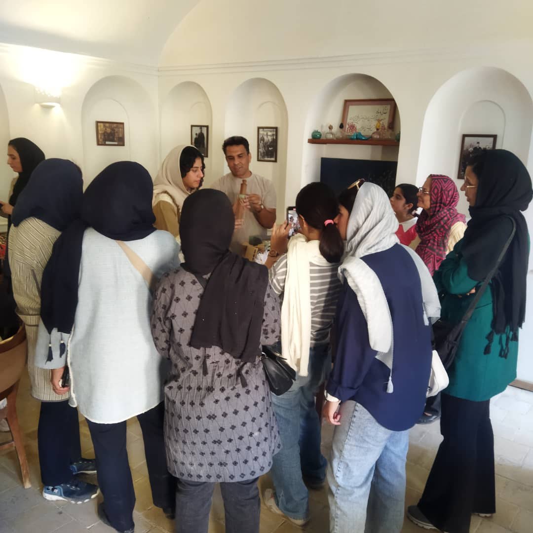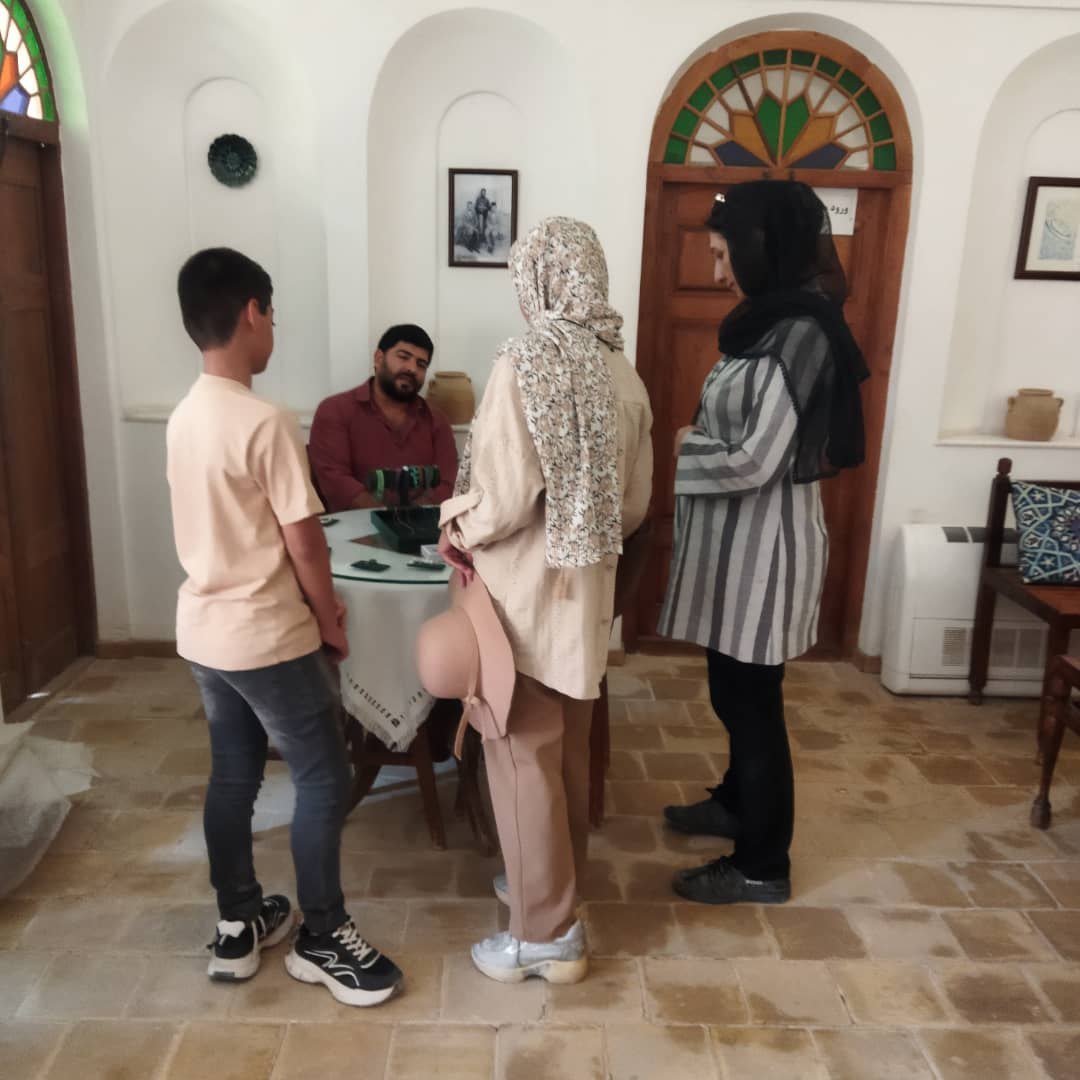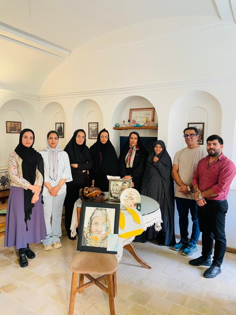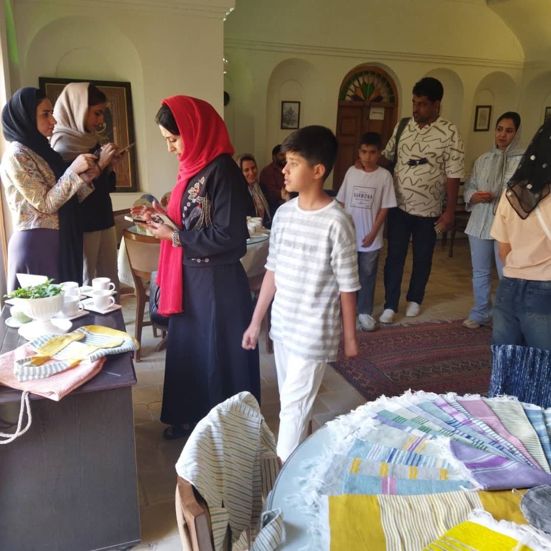 در روز جمعه مورخ ۱۴۰۴/۰۷/۰۴ همزمان با ورود گردشگران یزدی نمایشگاه صنایع دستی با سرپرستی خانم کاظمی مسئول صنایع دستی اداره میراث فرهنگی،گردشگری و صنایع دستی و کارگروه صنایع دستی هیئت اندیشه ورز تحول و پیشرفت شهرستان ابرکوه و همکاری مدیریت محترم خانه تاریخی آقازاده در این خانه و با اجرای منحصر به فرد پیشکسوت گیوه بافی (رووار بافی ، ملکی دوزی) استاد بی بی صغری بهرامی برگزار گردید در این نمایشگاه آقای حامد اکرمی تولیدات سفره پنبه ای، چنته بافی، عارسک جلی، عروسک اعلا و رعنا، تولیدات پلاس بافی و آقای مسیب خانی تولیدات زیورآلات سنتی، خانم نرگس امیدوار پناه تولیدات سفال سنتی لعاب دار (نقاشی زیر لعابی)، آقای محمد صالح فلاح زاده تولیدات خراطی چوب و پیکرتراشی، خانم سمیه نجفی تولیدات کاربافی و خانم محبوبه فلاح زاده تابلوهای نقاشی خود را به نمایش گذاشتند.